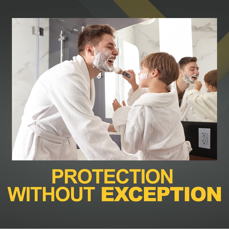 - Tamper-Resistant GFCI Outlet: Tamper-resistant shutter safety mechanism blocks access to power unless a plug is inserted, providing an extra layer of safety in households with children.