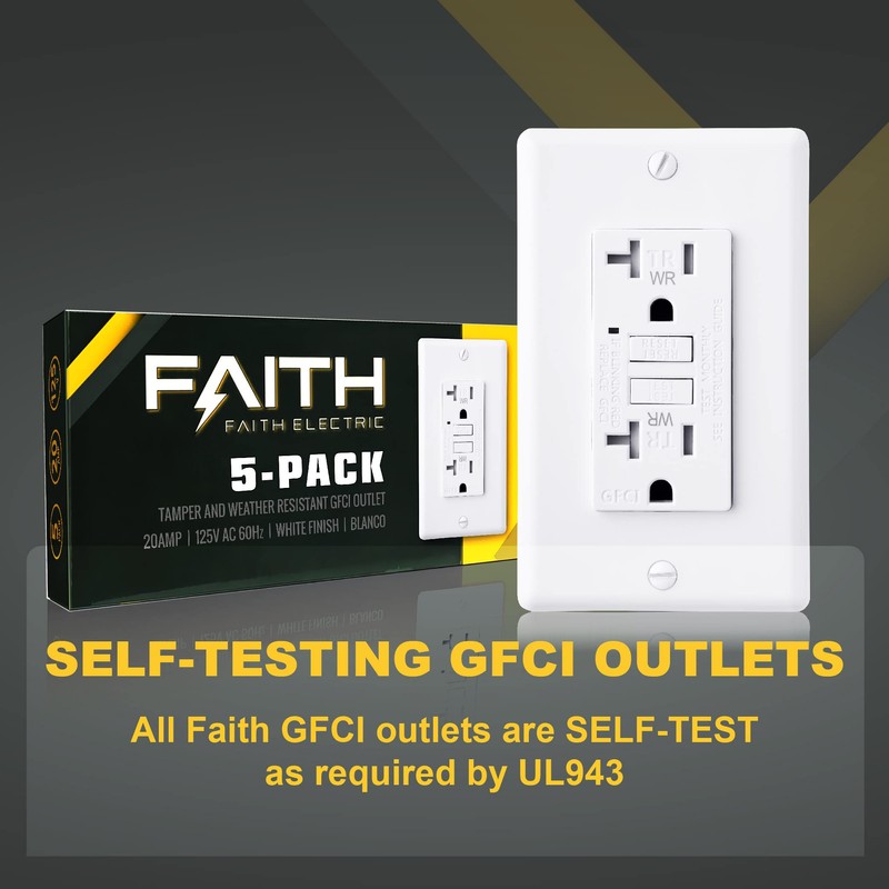 - Weather resistant: Faith WR GFCI's are made of UV-resistant materials deigned to withstand corrosion elements making it suitable areas subject to moisture, outdoor or indoor such as patios, kitchen or bathrooms.