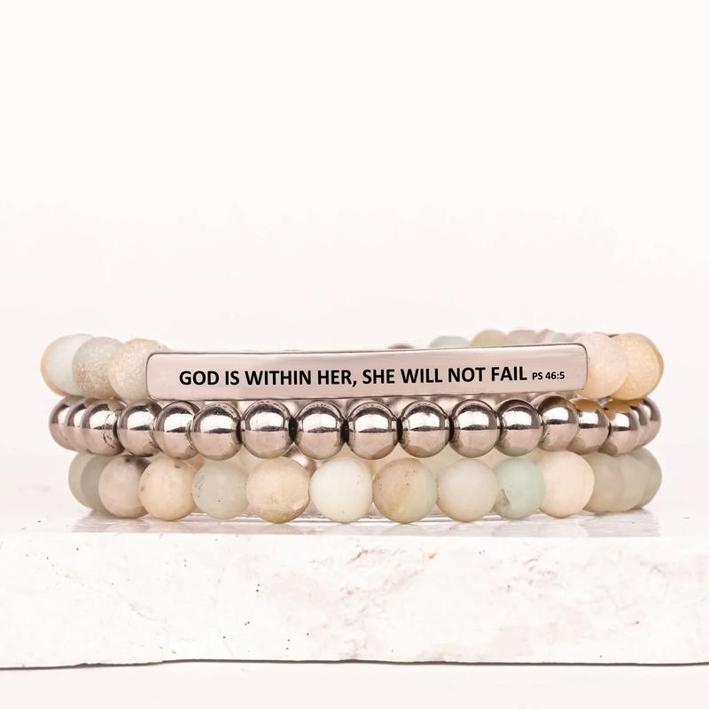FAITH COLLECTION GIFT SETS by The Inspiration Co. Top Seller Bundle Sets – Engraved Natural Stone Bracelets, Hypoallergenic, Bible verses your can wear:_Angels Guard You In All Your Ways _Medium_Amazonite Bundle Set