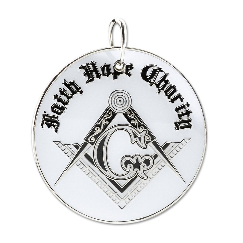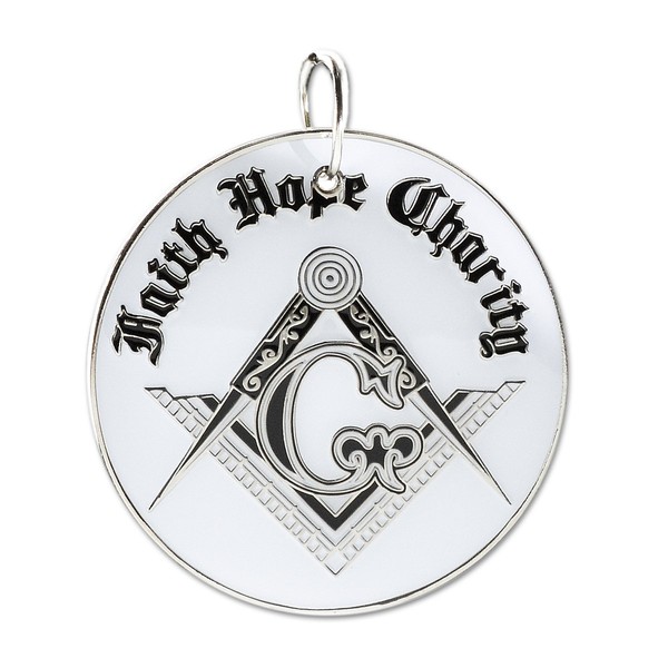 Faith Hope Charity Square & Compass White & Black Masonic Ornament - 2 1/2" Diameter