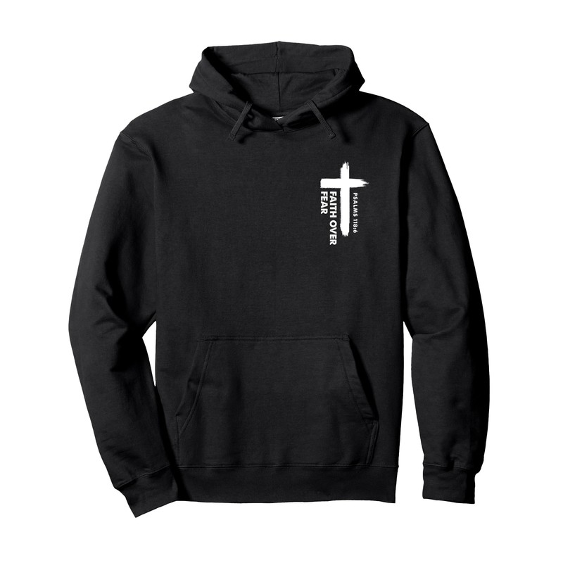 Faith Over Fear Christian Faith Cross Front and Back Print Pullover Hoodie