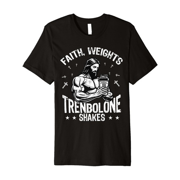 Faith Weights Trenbolone Shakes Jesus Gym Workout Design Premium T-Shirt