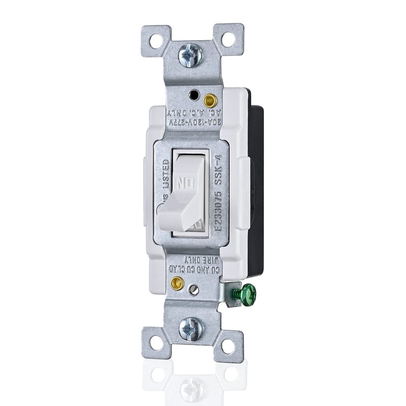 - MULTIPURPOSE SWITCH: Our Faith White Toggle Light Switch is a standard single-pole light switch that's ideal for most houses, apartments, and other residential construction or home improvement.