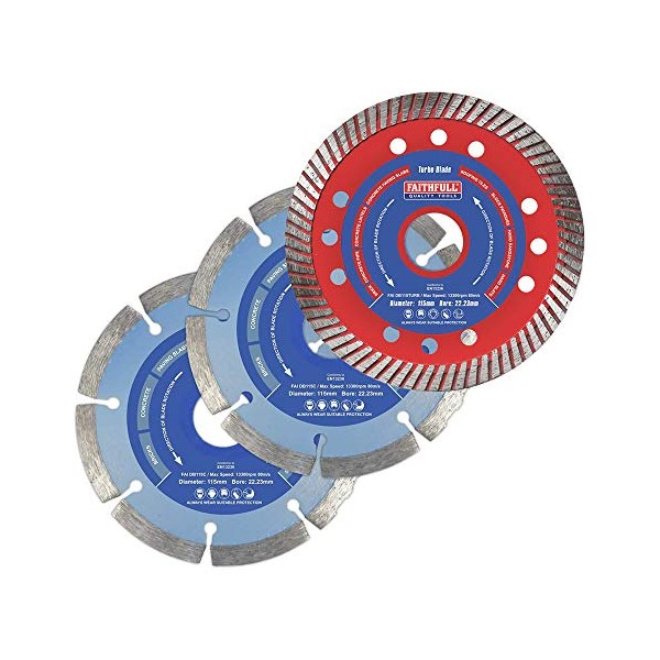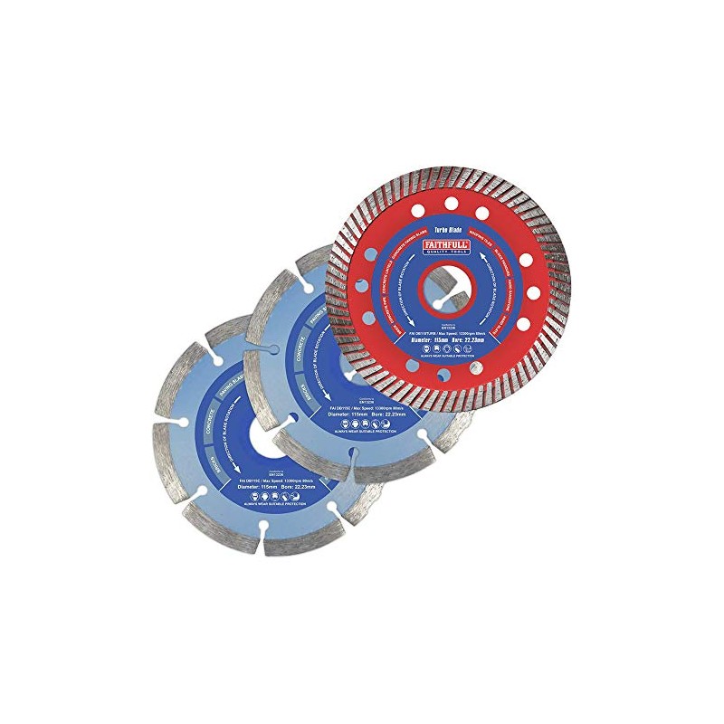 Faithfull DBSET3CT 115 mm Mixed Diamond Blade Set - Multi-Colour (3-Piece)