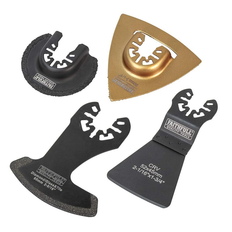 Faithfull FAIMFTKIT4 Tiling Set, Oscillating Multi-Function Tool Blade 4 Piece Set, Compatable with Most Popular Multi Tool Brands