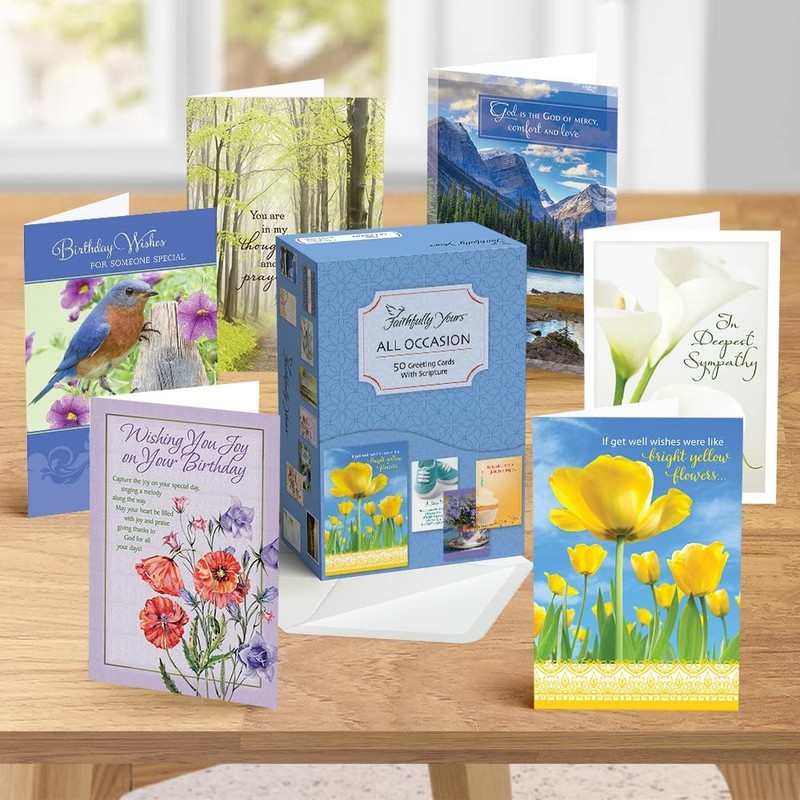 - SUPERIOR QUALITY AT AN AFFORDABLE PRICE – Each box contains 50 Faithfully Yours Inspirational cards and envelopes. Each card is printed on the finest quality cardstock with vibrant, inspirational designs (includes 2 cards of each design)!