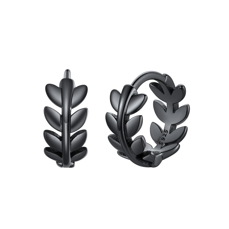 FaithHeart 925 Sterling Silver Black Hoop Earrings for Women, Hypoallergenic Huggie Hoop Earrings 9mm Lightweight Dainty Leaf Earring Small Cartilage Huggies Hoops with Gift Box