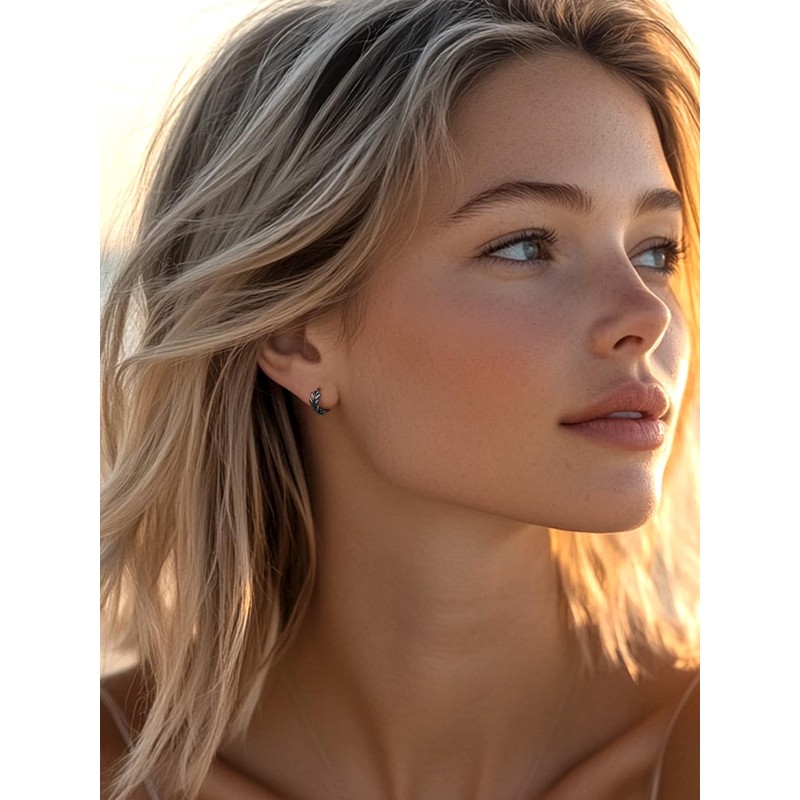 - Nature-Inspired Design: Delicate leaf-shaped huggie hoops crafted for a timeless and elegant look, perfect for both casual and formal occasions. If you’re looking for something that will add a little extra sparkle to your outfit, then thses small hoop earrings are definitely the way to go!