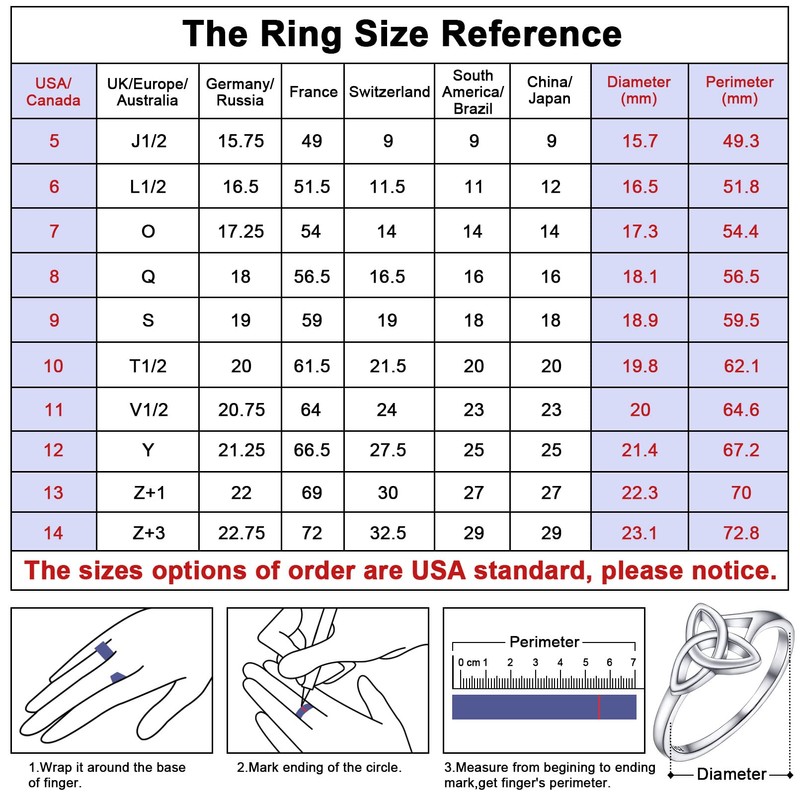 - ✯【Engagement Wedding Band】✯This irish triquetra ring is 2mm wide, 1.25mm thick, solid and no jagged, ring size: h 1/2, j 1/2, l 1/2, o, q, s, t 1/2, v 1/2, y(4,5,6,7,8,9,10,11,12), net weight: 1.8-2g/piece, very lightweight and comfortable to wear, smoothing surface, will not hurt your skins and no harm to your health.