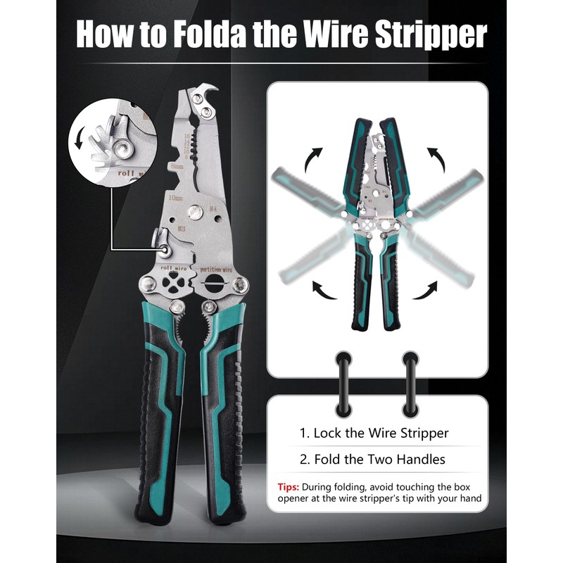 - The wire stripper features a foldable body design that is compact and easy to store and carry. Additionally, the handle is equipped with an anti-slip design to provide protection and comfort for your hands.
