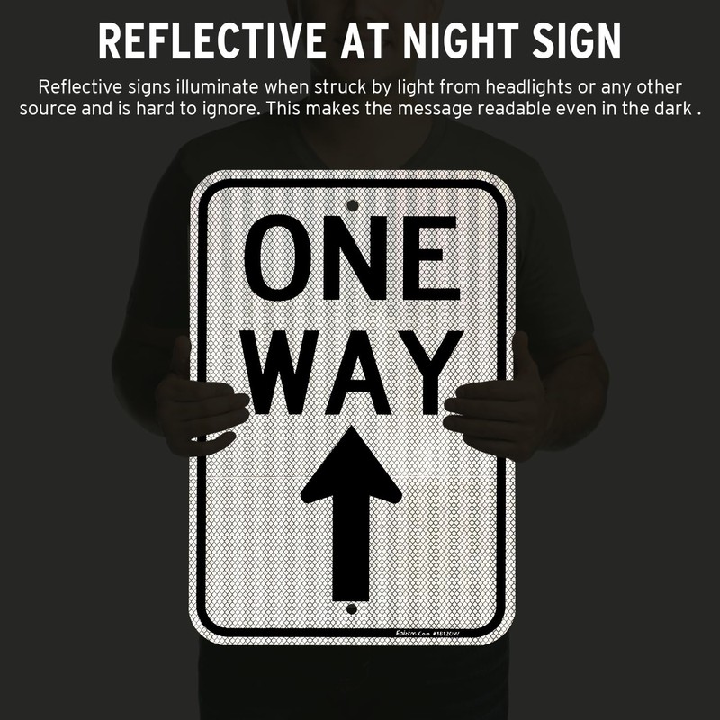 - Easy to See:The One Way Signs with Up Arrow designed with simple black bold letters on the white reflective plate draws people's attention to its content.