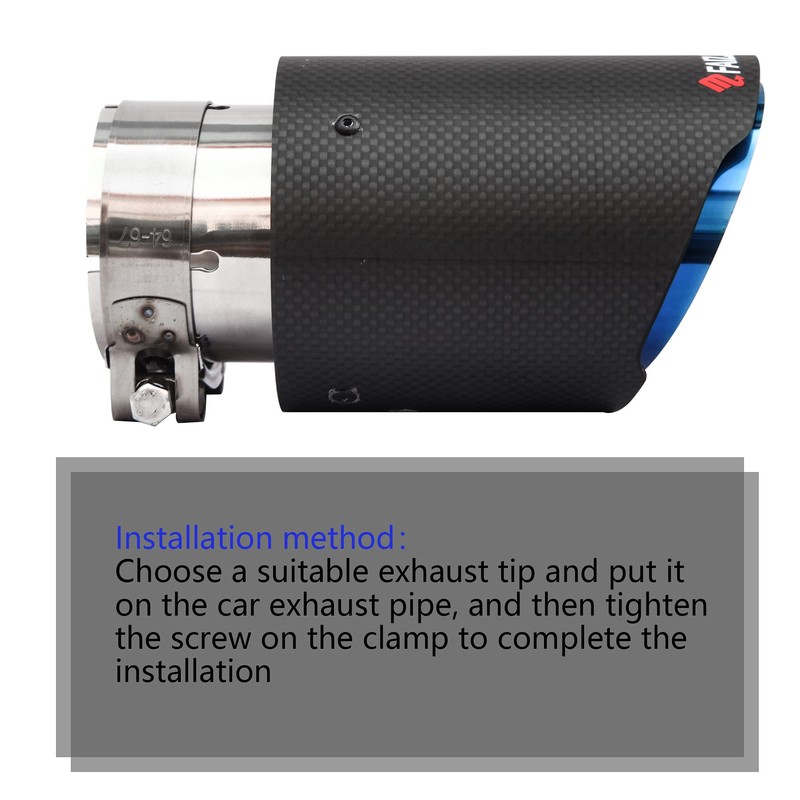 • [Easy installation] No need to cut and weld, just put the carbon fiber tail pipe on the car exhaust pipe and tighten the fixing device. You can install it easily.
