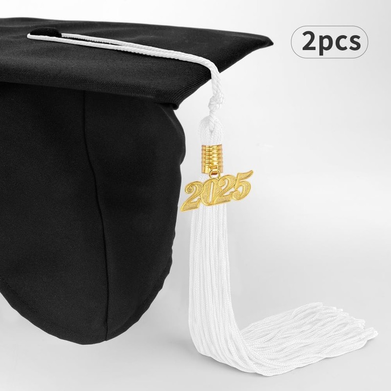 • 2 Pcs tassels: The tassel length is 7.9 inches/20 cm and the hang loop length is 6.5 inches/16.5 cm, perfect for graduation caps and gowns. Standard size for all graduation levels in US schools, colleges, and universities. Graduation Tassel is suitable as 2025 tassel graduation, accesorios para graduación 2025, pre k graduation cap, white tassel 2025, memorial tassel for graduation 2025, 2025 charms, 2025 graduation tassel, graduation tassels 2025, 2025 graduation tassels, white tassel.