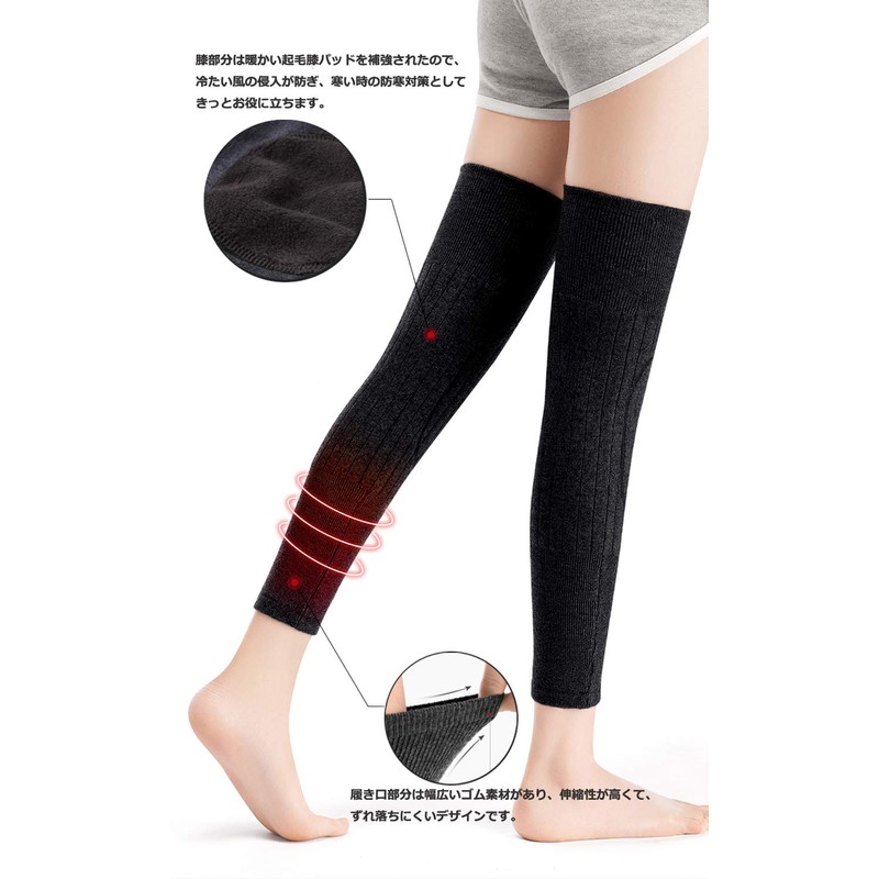- 足首から膝上までしっかりカバーしてくれるレッグウォーマーです。バイクや自転車で通勤・通学方にも、寒がりな方、睡眠中に足がつりやすい方にもおススメです。