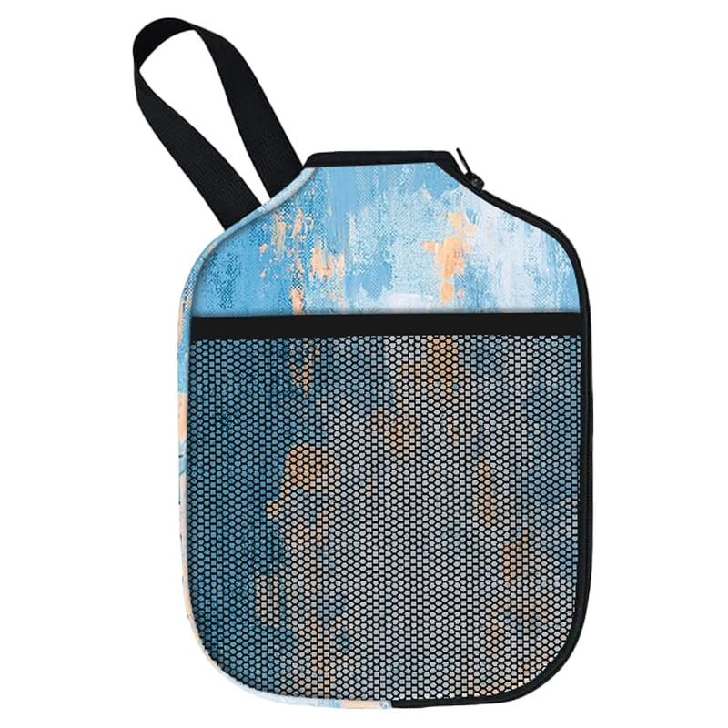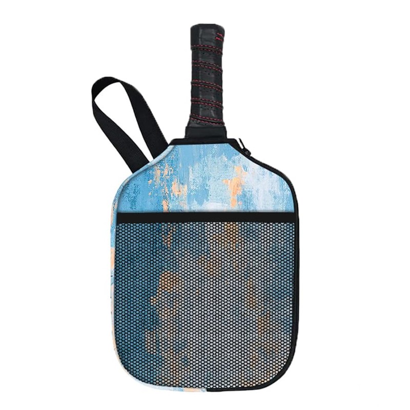 FakeFace Pickleball Paddle Cover with Carrying Strap and Net, Zippered Durable Neoprene Pickleball Racket Storage Bag Protection Case for Universal Size (Blue)