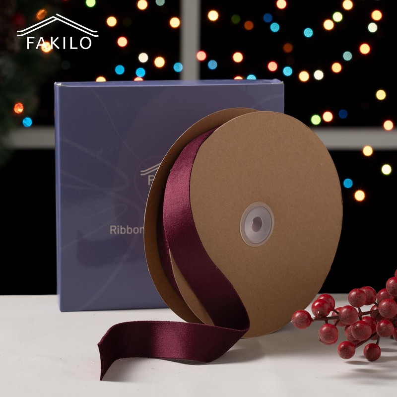 FAKILO Wine Red Velvet Ribbon Double Faced 1 Inch x 20 Yard Wine Red Ribbon f...