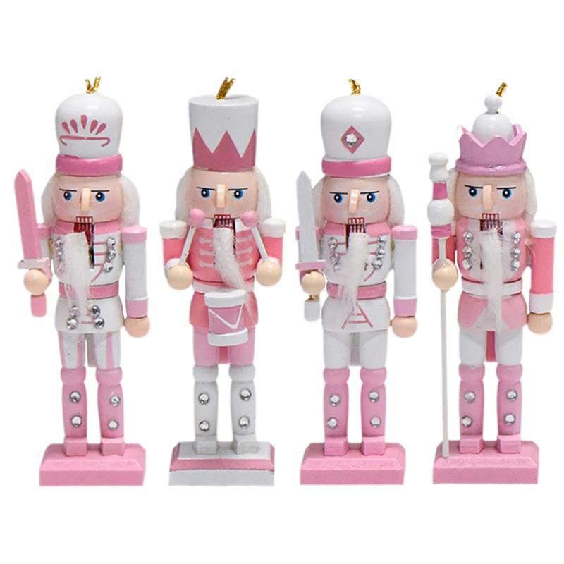 13 cm Wooden Nutcracker Ornaments for Christmas Tree Decorations 4 Pcs Pink Christmas Nutcracker Figures Soldier Nutcracker Hanging Supplies for Christmas Party