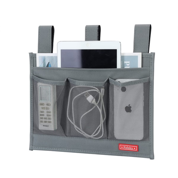 Falaku Hanging Bedside Caddy,Bedside Organizer Caddy for Bed Rails(4 Pockets-Grey)