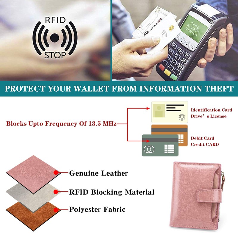 - ③【ENHANCES PROPERTY SECURITY】We leverage top RFID technology to block RFID signals used to electronically scan your RFID wallet women as someone passes by unnoticed. Tested & Approved by Independent Test Lab. Keeps your vital information in Your Credit cards, Debit cards, Banking Information, Smartcards, RFID driver's licenses and other cards from being stolen