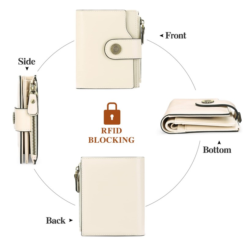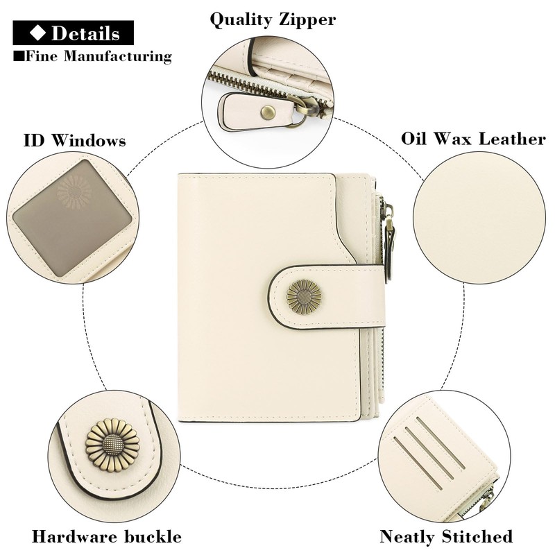 - Leather Wallets for women: This women's wallet is made of high quality cowhide wax oil leather. Longer time we use, nicer it becomes. Compact yet small enough to put into your coat pocket or your cross body bag. Best choice for avoiding bulky looking wallets