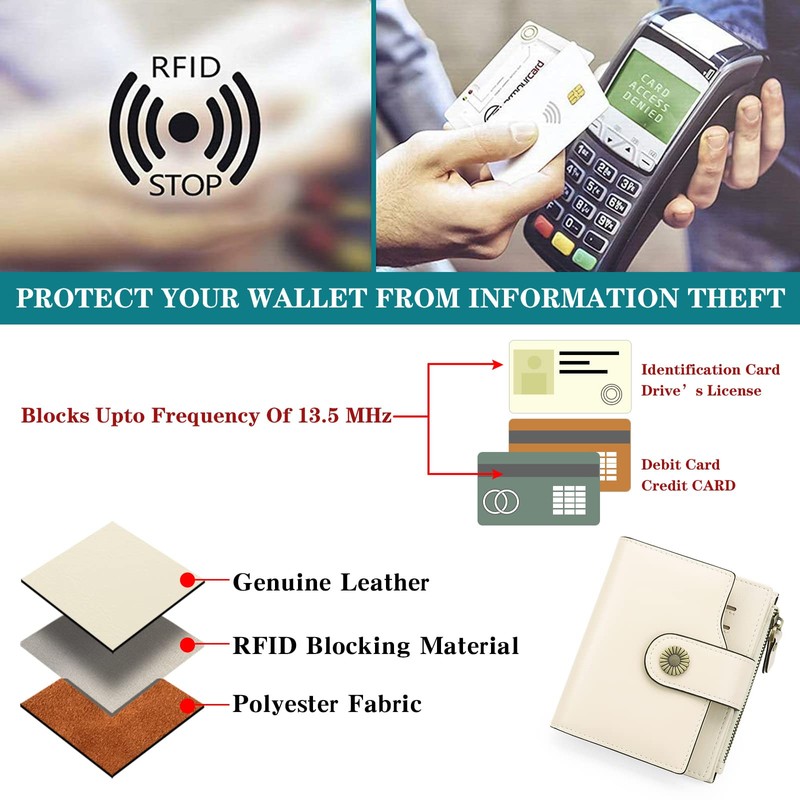 - Rfid Wallet for women: We leverage top RFID technology to block RFID signals used to electronically scan your wallet as someone passes by unnoticed. Tested & Approved by Independent Test Lab. Keeps your vital information in Your Credit cards, Debit cards, Banking Information, Smartcards, RFID driver's licenses and other cards from being stolen