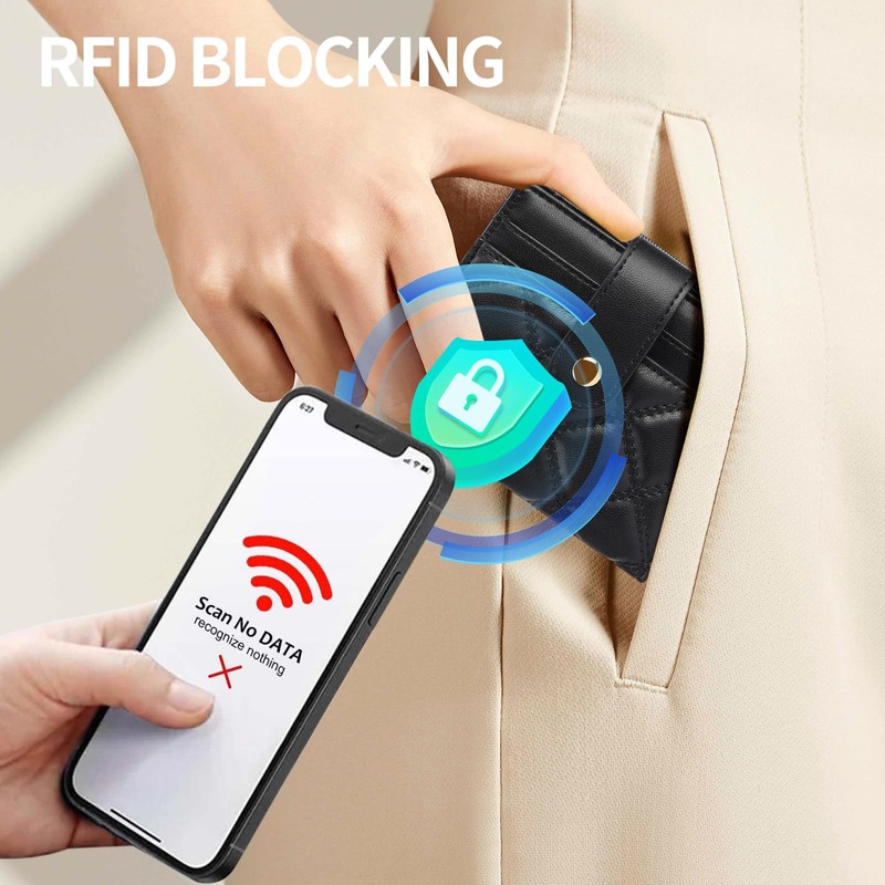 • Secure RFID wallets for women: each card slot in our RFID blocking wallet is equipped with an advanced RFID blocking lining that protects the valuable information stored on RFID chips from unauthorised scans.