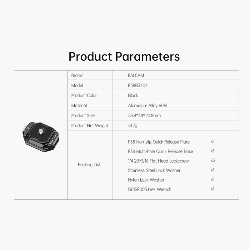 • 1/4 inch threaded hole for external double thread devices / F50 quick release plate can be transferred to the use of F38.