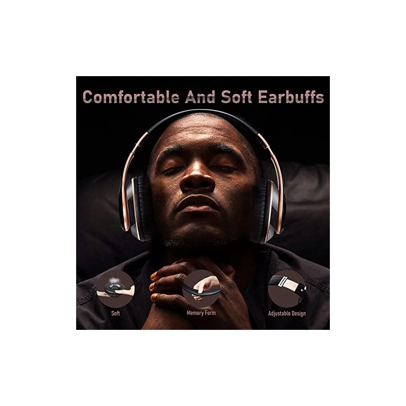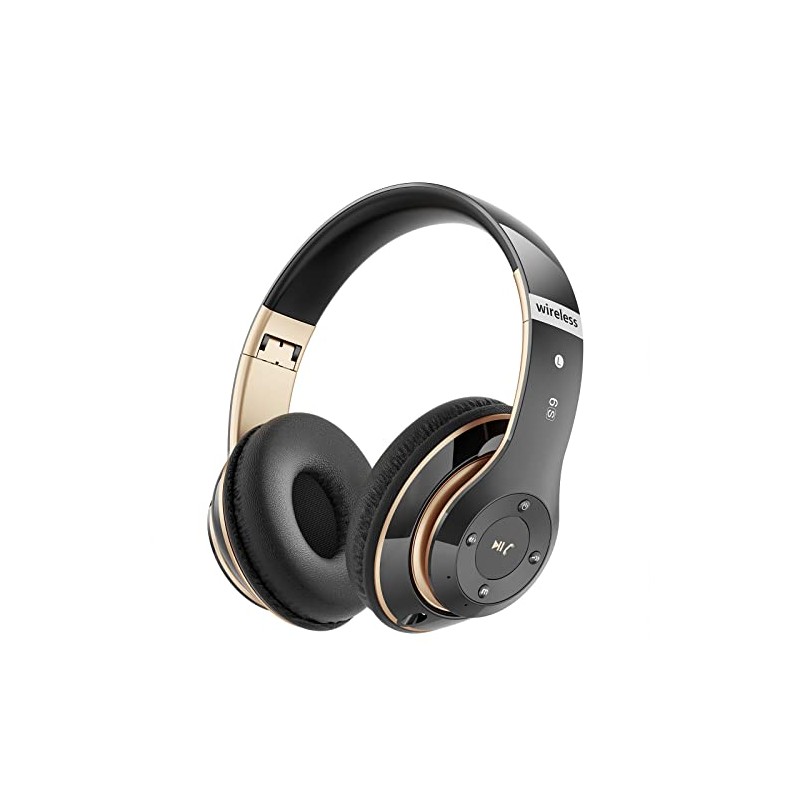 Falebare Falebare Bluetooth Headphones Over Ear, 6S Wireless Headphones Wired with 6 EQ Modes, 40 Hours Playtime Foldable HiFi Stereo Headset with Microphone, FM/TF for Cellphone/PC/Work (Black & Gold)