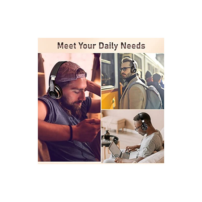 - 40 Hours Long Playtime with 6 EQ Modes - Our Wireless Headphones have 6 EQ modes with which you can freely switch between Bass/Jazz/Voice/Rock/Pop/Classic sounds, each mode provides you with the CD quality sound. 500mAh battery, 40 hours of playtime, 2.5 hours Fast Charging. The wireless headphones come with a 3.5mm audio cable, meaning you can switch to wired mode and enjoy your music non-stop. Whether you want wireless headphones or wired headphones, Bluetooth headphones have you covered