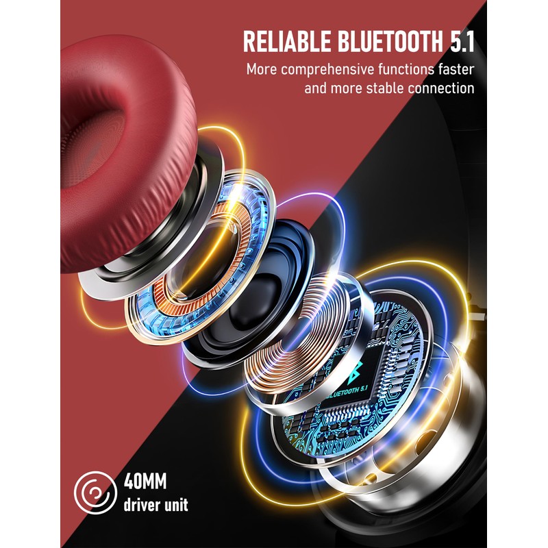 - [Bluetooth upgrade] Wireless headphones use the latest Bluetooth 5.1 chip,With a built-in microphone, which can connect to devices within 2 seconds after turning on. It has faster transmission speed, lower power consumption, and stronger security performance, making the headphones more power-efficient. Willmood over-ear headphones can connect to 2 devices simultaneously, allowing you to watch movies on TV while answering calls without switching