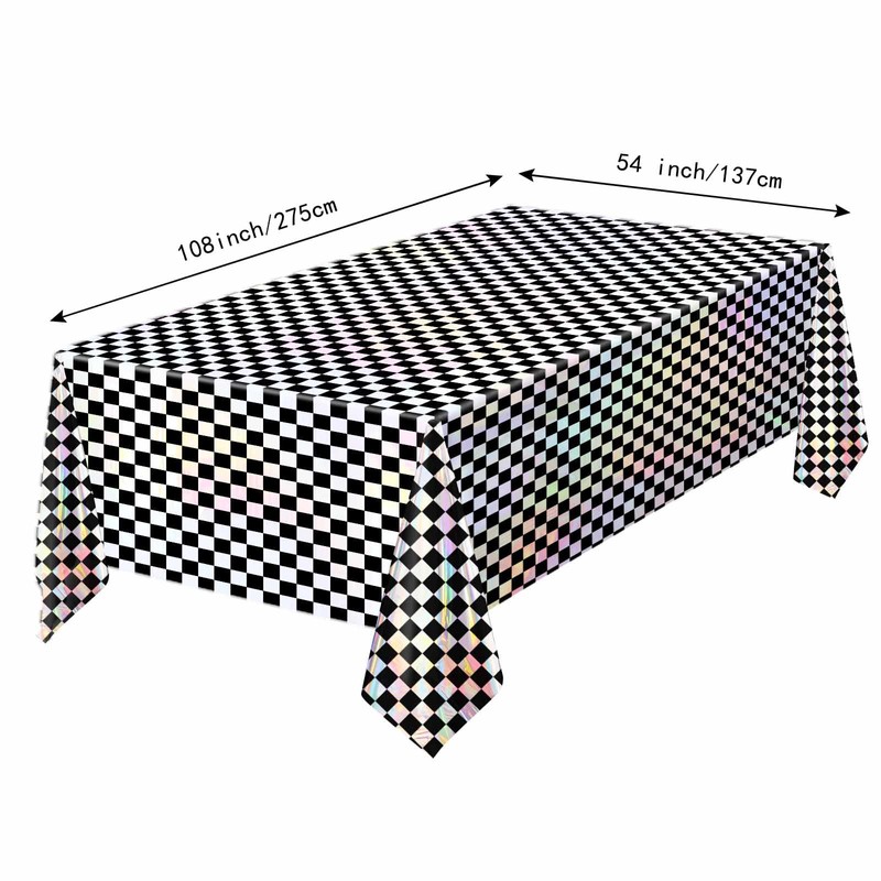Color: 2 Pack Black and Iridescent Checkered Tablecloth