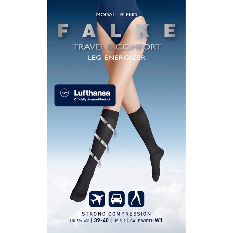 - Significantly Delayed Fatigue: FALKE compression knee socks for long journeys, during or after pregnancy, as well as extreme stress while sitting, standing, walking or wedding. The compression provides better blood circulation in the foot and provides the leg with oxygen. Lufthansa has awarded this product as the "best travel product" and licensed as an official Lufthansa partner product