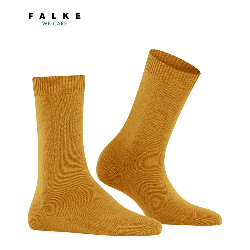 FALKE Women's Cosy Wool Socks Breathable Climate Regulating Odour-Inhibiting Sustainable Wool Cashmere Reinforced Flat Seam for Pressure-free Toe Plain Business Everyday 1 Pair, Yellow Amber 1851