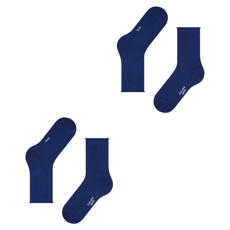 FALKE Women's Happy Double Pack W So Cotton Plain 2 Pairs Socks, Blue Royal 6000, 5.5-8
