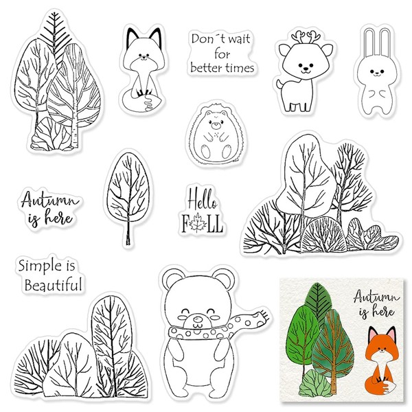 - [Design of Patterns] Clear Stamps designed with fall animals like fox, deer, bear and rabbit.