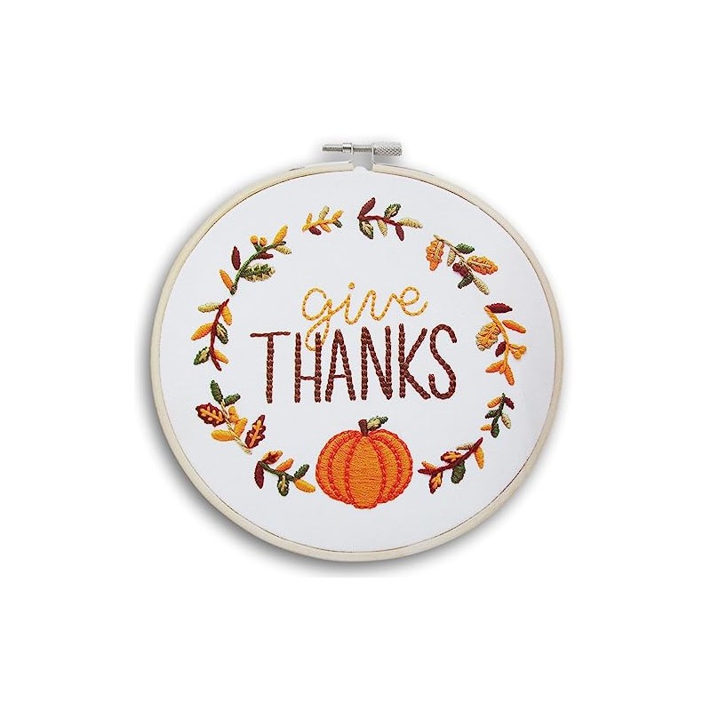 Fall Crafts Thanksgiving Embroidery Kit with Hoop and Cross - Makes One 6 Inc...