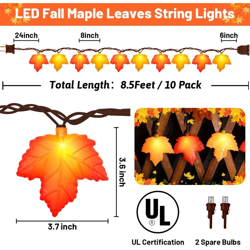 - 【UL Certified & IP44 Waterproof】 – Our fall leaves lights have been rigorously tested and UL certified for safety. With an IP44 waterproof rating, fall leaf decor lights to withstand outdoor weather conditions, ensuring they are safe and durable for indoor outdoor fall decorations year after year.