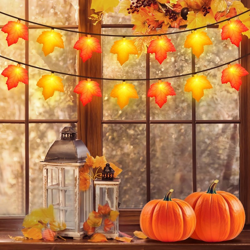 - 【Perfect for Fall & Thanksgiving Decor】 – These LED maple leaf string lights are ideal as fall decorations for home, and also perfect as Thanksgiving lights. Drape them along your mantel to add cozy warmth to your home, light them up at an autumn harvest party or Thanksgiving gathering for rich festive ambiance, or illuminate your dinner table to infuse seasonal charm. With their warm glow and realistic 3D maple leaves, they'll become your go-to decor for Thanksgiving and autumn!