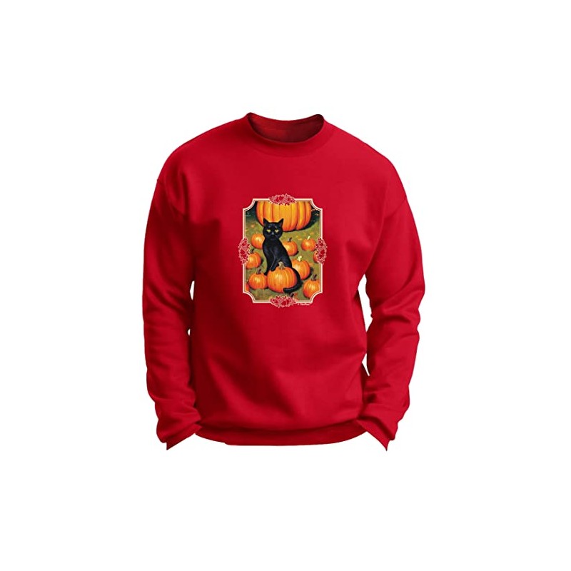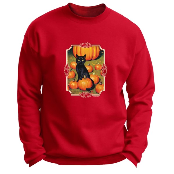 Fall Decorations for Home Black Cat in A Pumpkin Patch Premium Crewneck Sweatshirt Small Deep Red