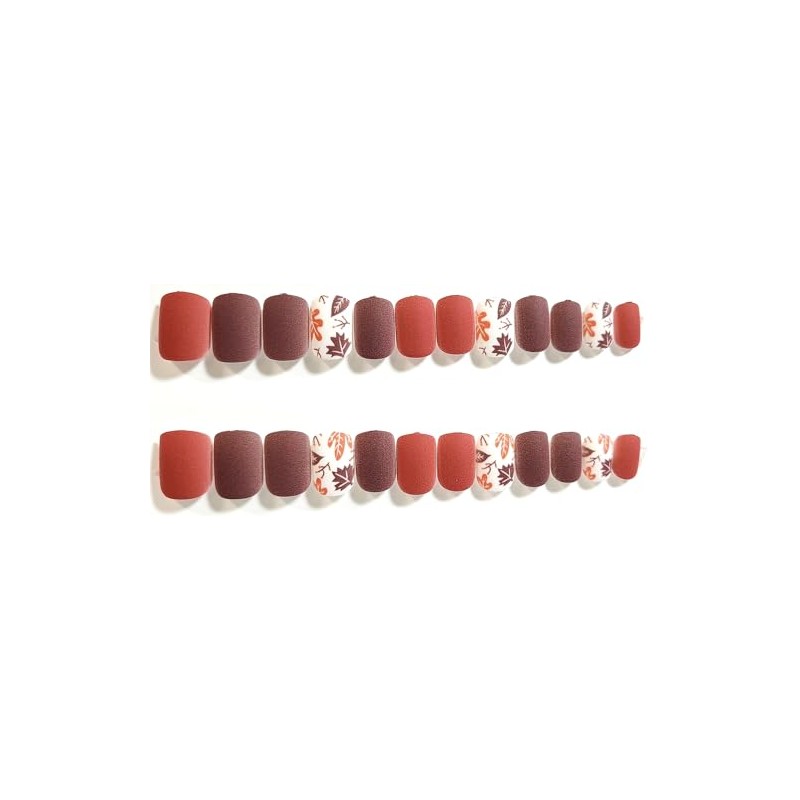 Fall Foliage Matte Short Square Press On Nails - 24 Pieces - Artificial Nail Kit