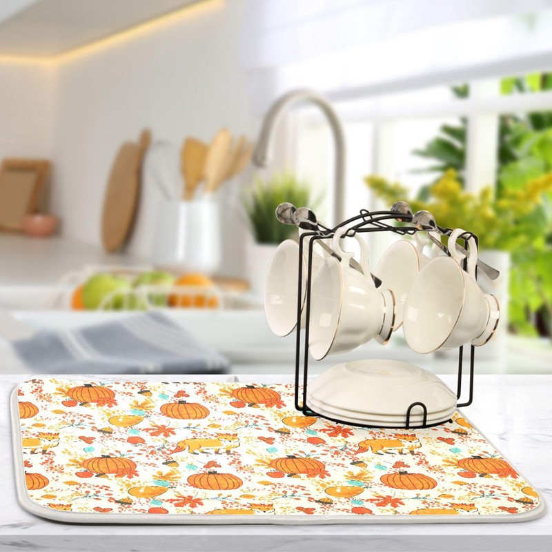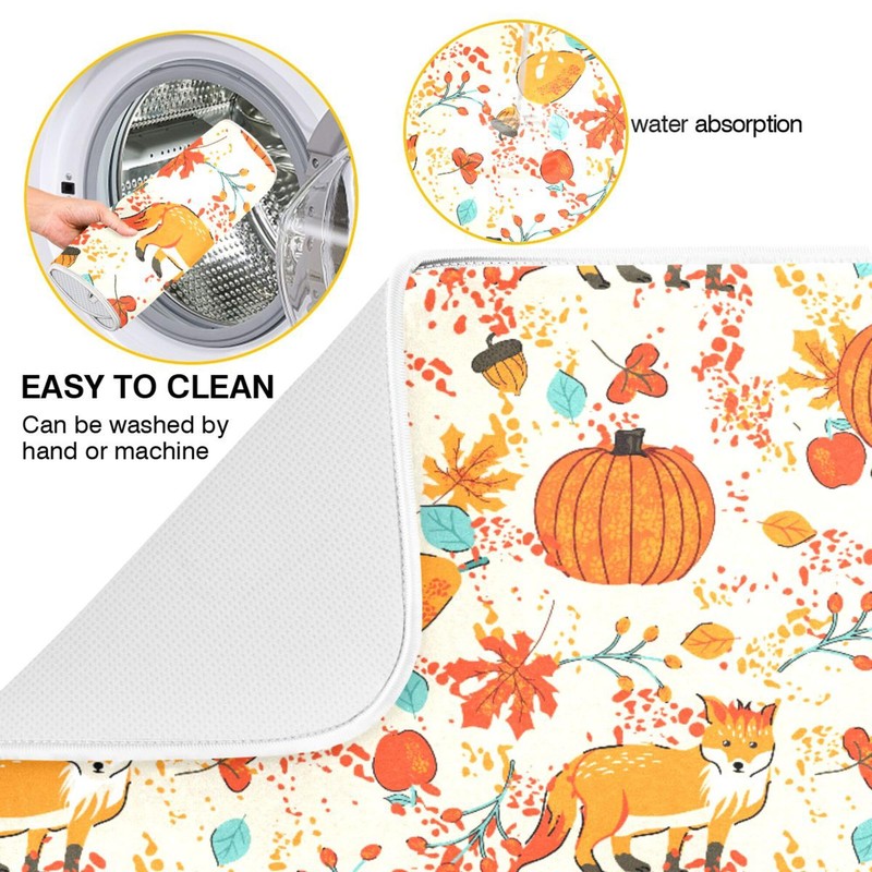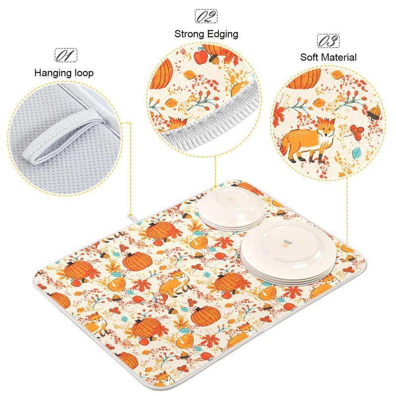 Fall Fox Dish Drying Mat for Kitchen Countertop 18x24 Autumn Chestnuts Pumpkin Berry Thanksgiving Day Large Drying Mat Reusable Quick Dry Dish Sink Mats Easy Clean Decorative Essentials