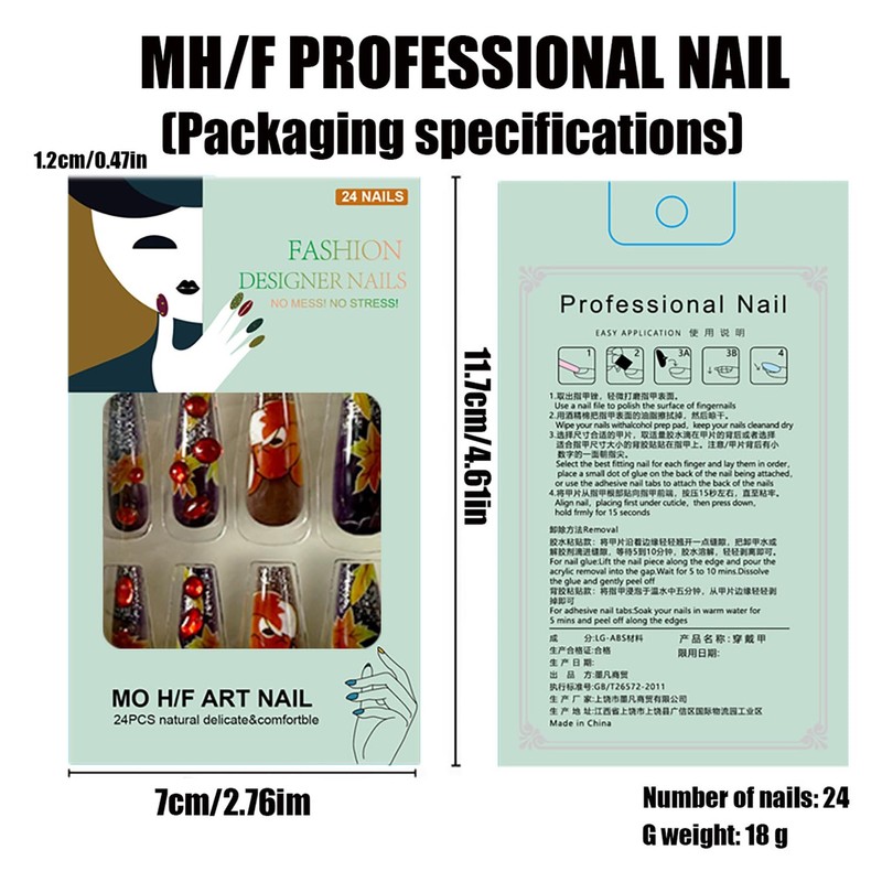 - Package Contents: 24Pcs Fox Maple Leaf Press on Nails Long Square Shaped Fake Nails +1 Nail File + 24Pcs Jelly Glue Stickers+1 Wooden Stick.No matter the size or width of your nails, you can choose the most suitable false nails for yourself.