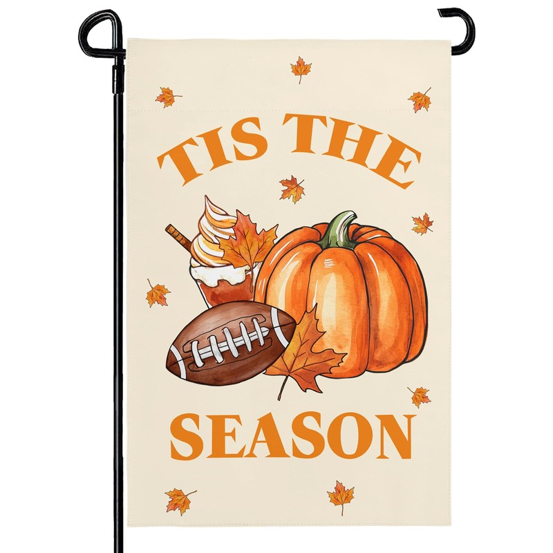 - Double Sided : The football garden flag is designed with autumn pumpkin , maple leaves ,football and its title : tis the season ,which is printed on both side , it is colorful , vibrant and lively