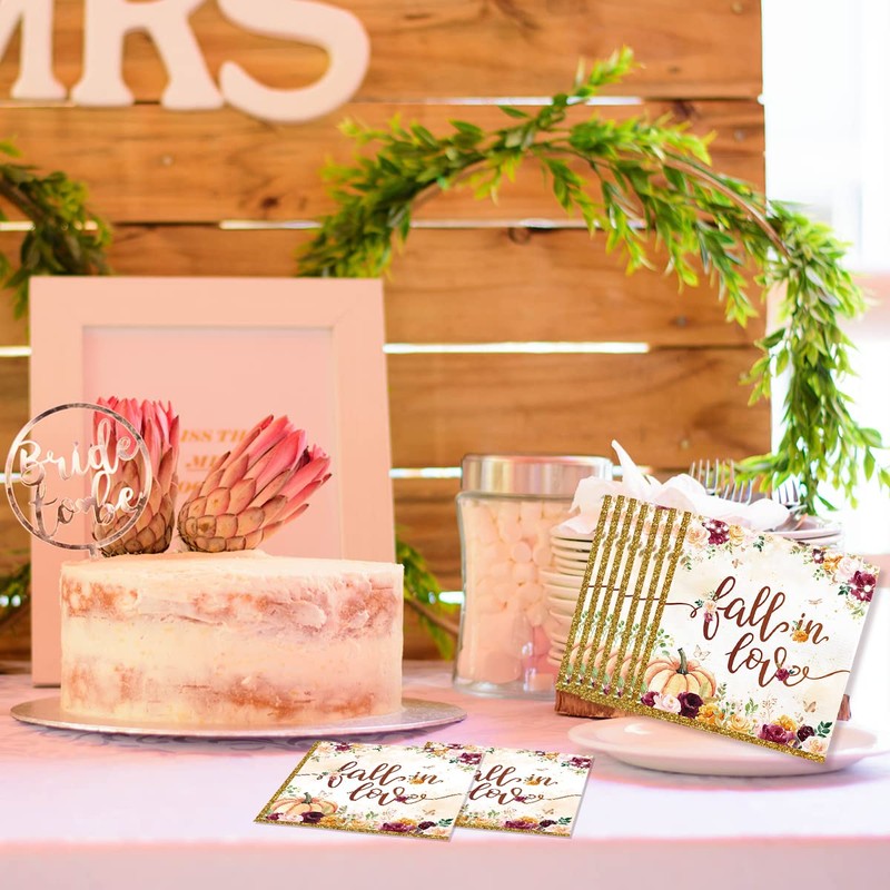 Fall in Love Napkins Disposable Fall Pumpkin Maple Leaf Napkins Suitable for Autumn Weddings, Bridal Showers, Autumn Themed Party Supplies Tableware Decoration-40PCS