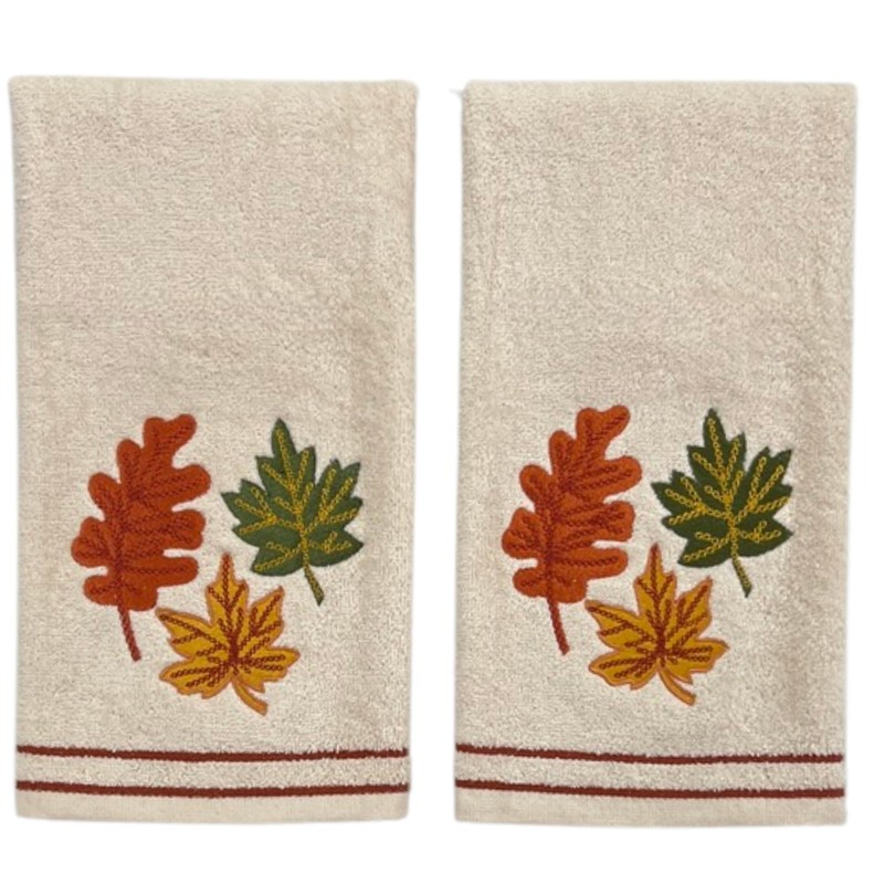 Fall Leaves Hand Bathroom Towel Set, 100% Cotton, 16 x 25 inches, Set of 2