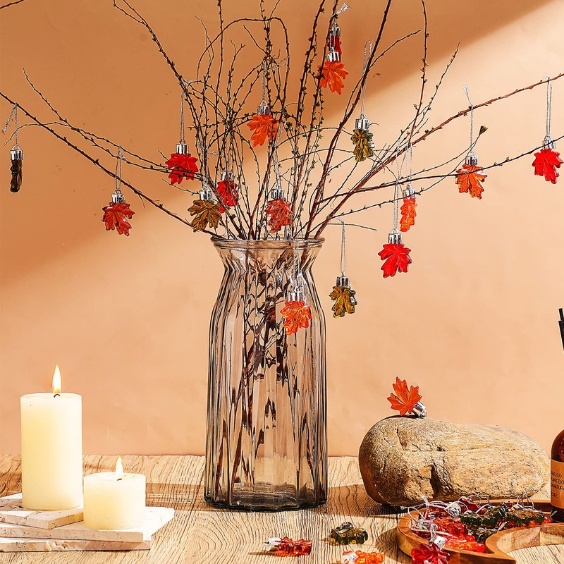 Fall Maple Leaf Ornaments Thanksgiving Maple Leaf Hanging Pendant Small Tree Hanging Ornament for Fall Thanksgiving Tree, Table, Party Hanging Home Decorations (24 Pcs)