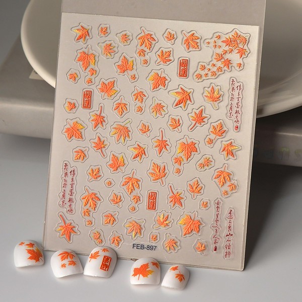 Fall Nail Stickers 5D Embossed Self-Adhesive Nail Decals Maple Leaf Nail Art Design Decals for - Thanksgiving Decoration DIY French Autumn DIY Manicure Supplies Accessories for Women