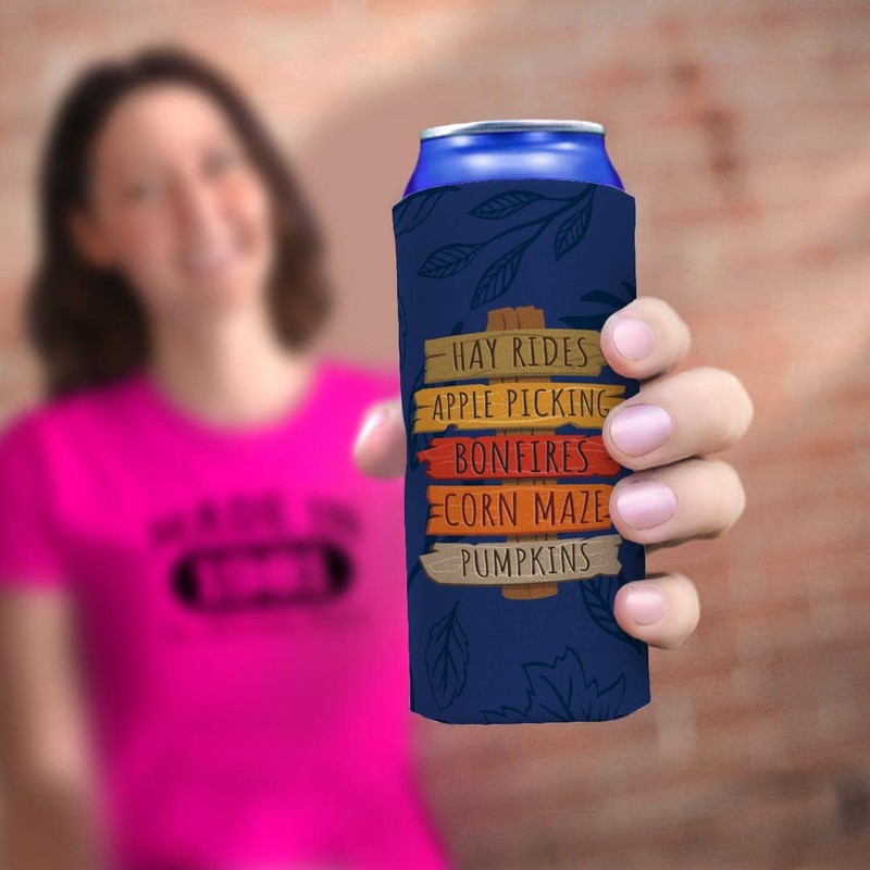 Fall Party Supplies Fall Event Signs Hay Rides Apple Picking Bonfires Corn Maze Pumpkins 12-Pack Ultra Slim Can Coolies White
