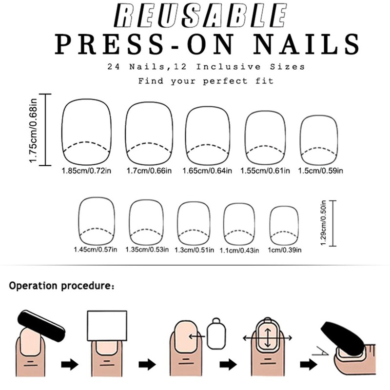 - How to use: Clean your nails first, then choose the appropriate size of cute false nails, short stick on nails the jelly glue we gave you, and press the artificial nails for 30 seconds. Simple steps allow you to easily have a nail salon at home