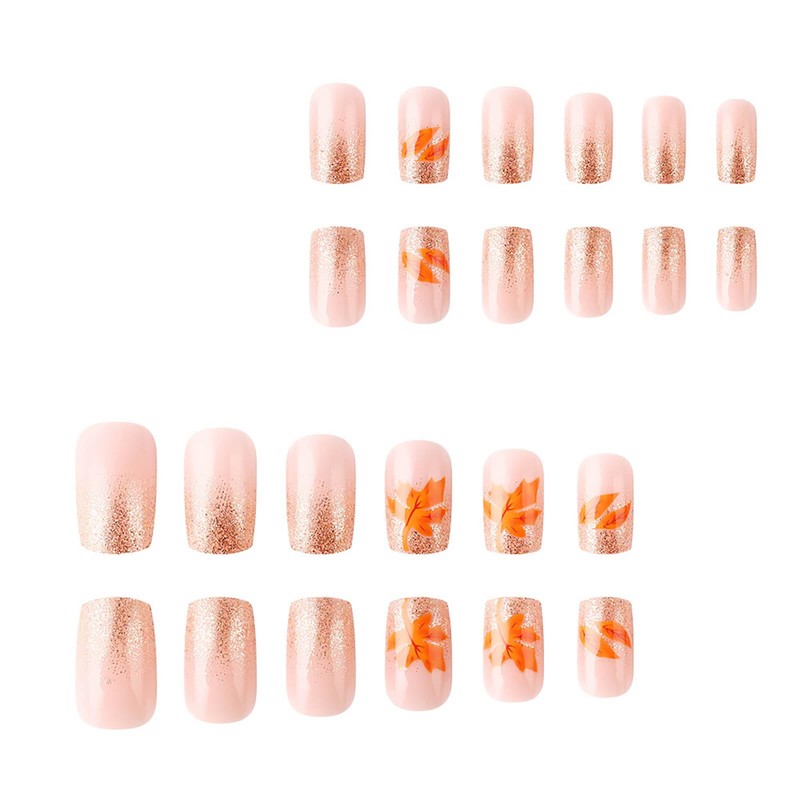 24Pcs Short Press on Nails Fall Fake Nails with Nail Glue Exquisite Design for Women Nail Art Set